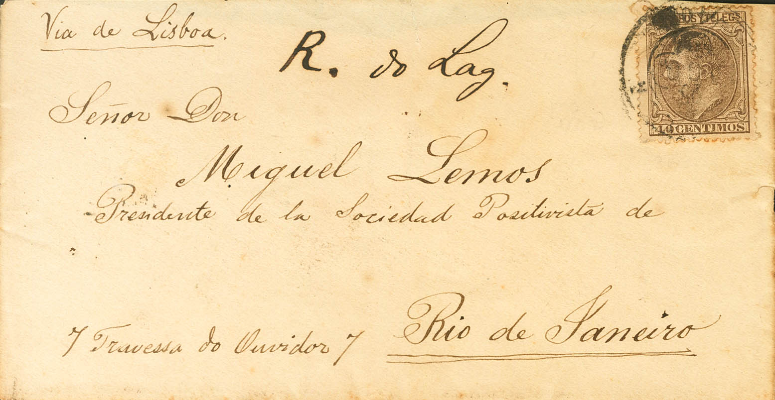 English |ABOUT| 205. 1881. 40 cts chestnut. Addressed to RIO DE JANEIRO (BRAZIL), circulated via Portugal. MAGNIFICENT.