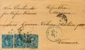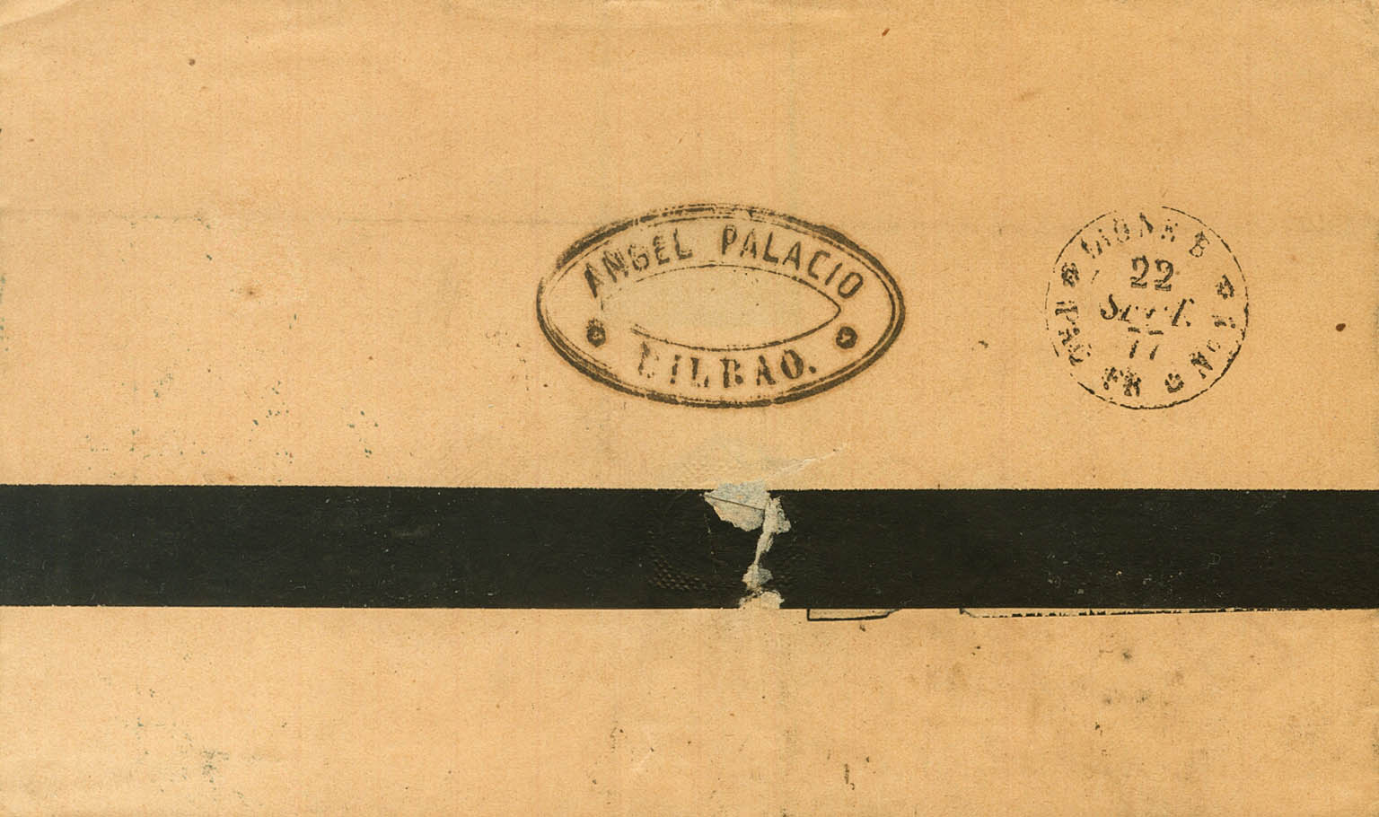 English |ENVELOPE| 175(2), 180. 1877. 10 cts blue, two stamps and 1 pts blue. BILBAO to VERACRUZ (MEXICO). On the front, transit through Santander and handwritten annotation "Via Santander by French Steamer", single postage by French ships according to the January 1876 rate. MAGNIFICENT AND VERY RARE WITH THE USE OF THE 1 PTS.