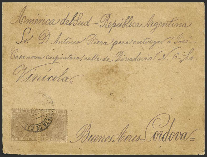 205(2). 1889. 40 cts, pair. Addressed to BUENOS AIRES (ARGENTINA). MAGNIFICENT.