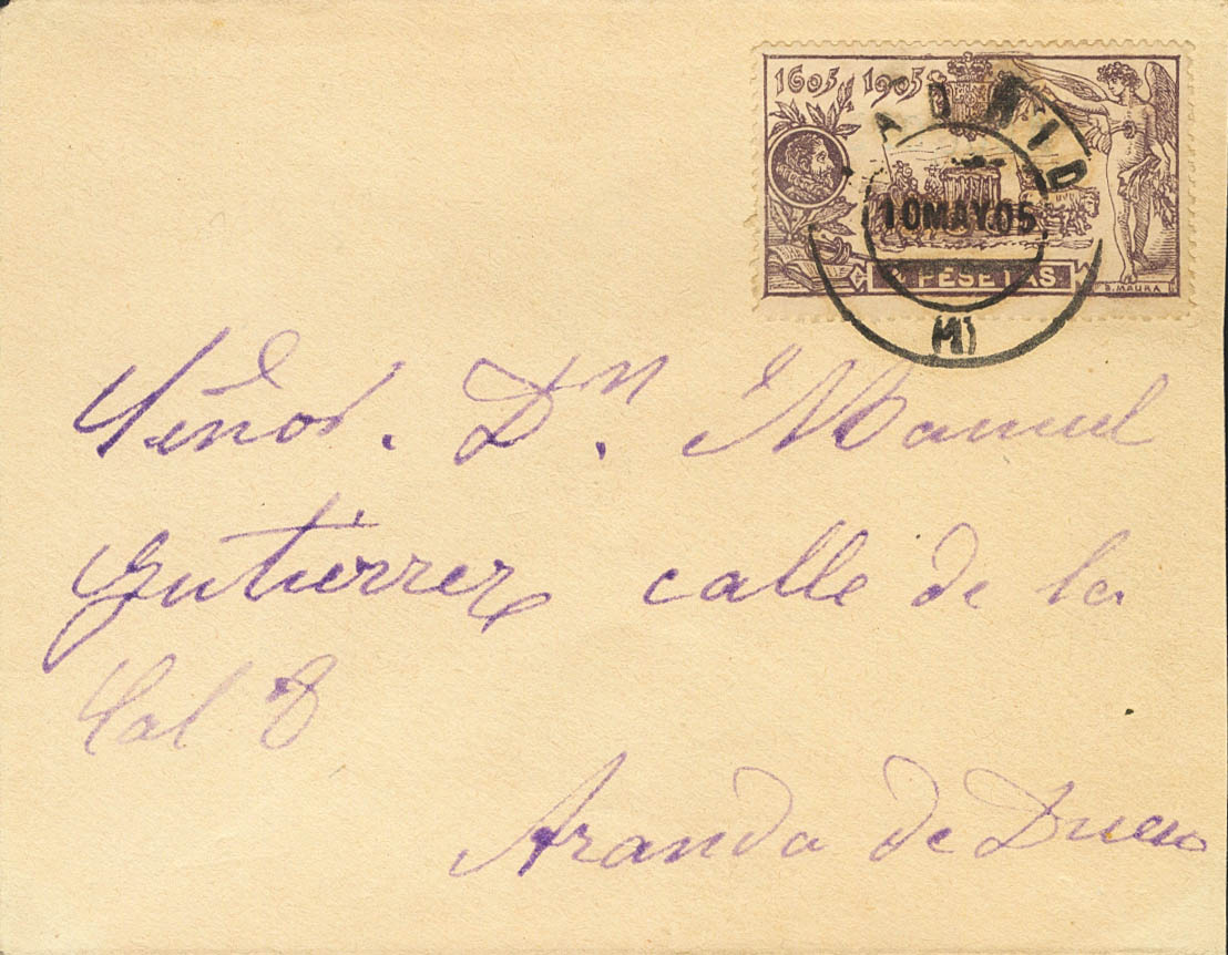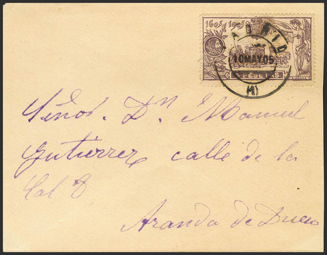 265. 1905. 4 pts purple. Philatelic Letter from MADRID to ARANDA DE DUERO. MAGNIFICENT AND VERY RARE. GRAUS opinion.