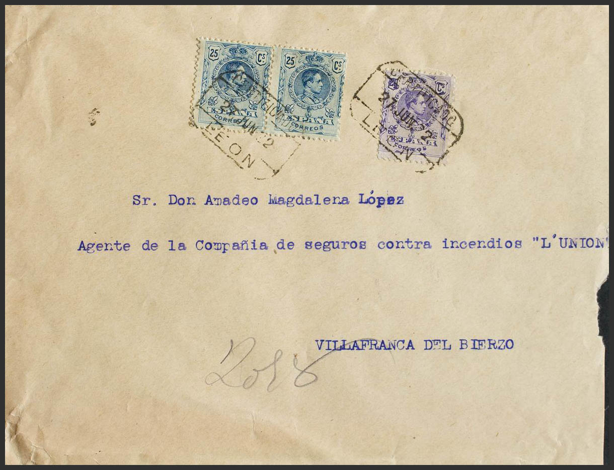 273, 274(2). 1920. 20 cts purple and 25 cts blue, pair. Certificate from LEON to VILLAFRANCA DEL BIERZO. On the back arrival. MAGNIFICENT.
