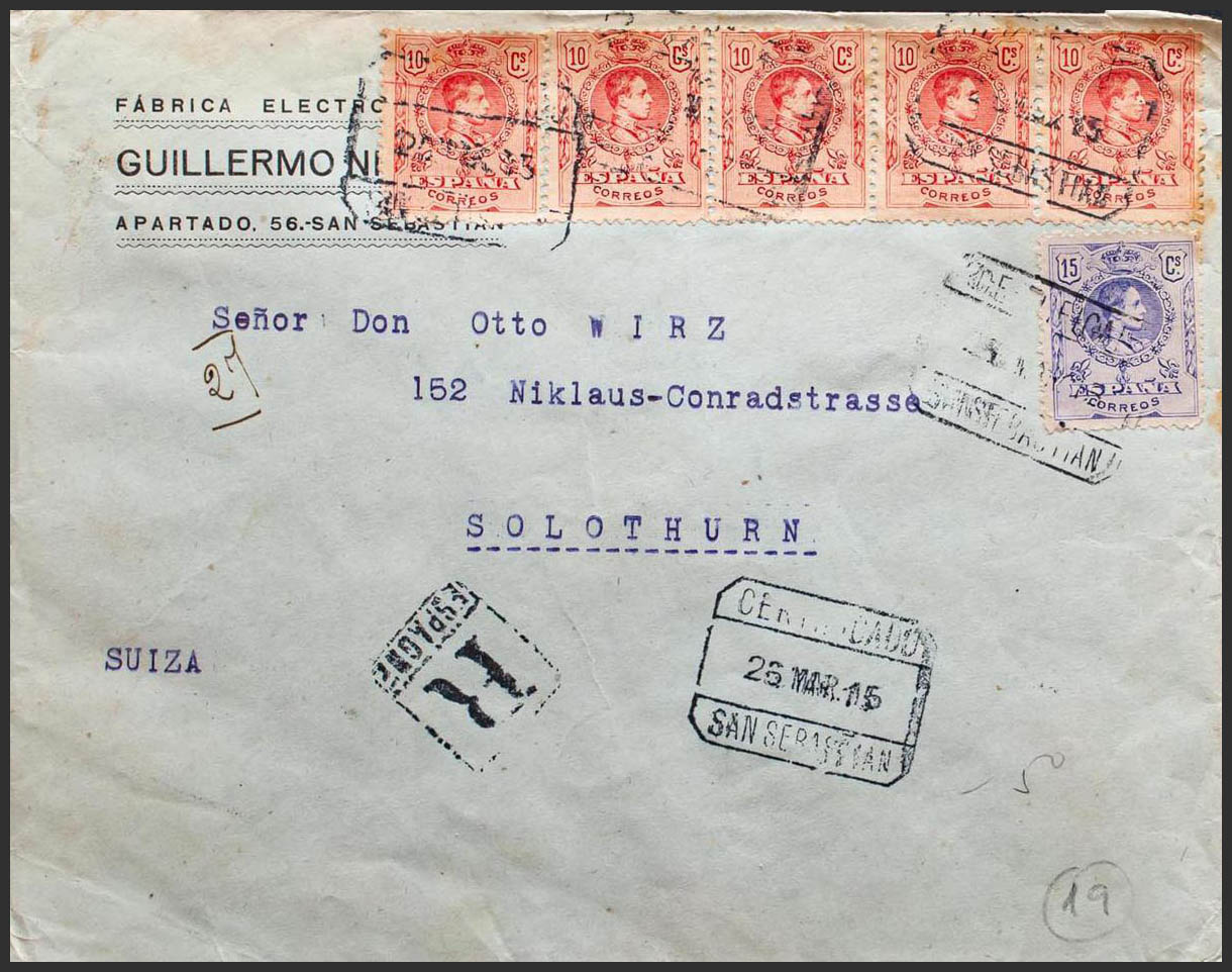 Alfonso XIII Certified Mail. CERTIFICATE / SAN SEBASTIAN, on the back arrival. MAGNIFICENT.