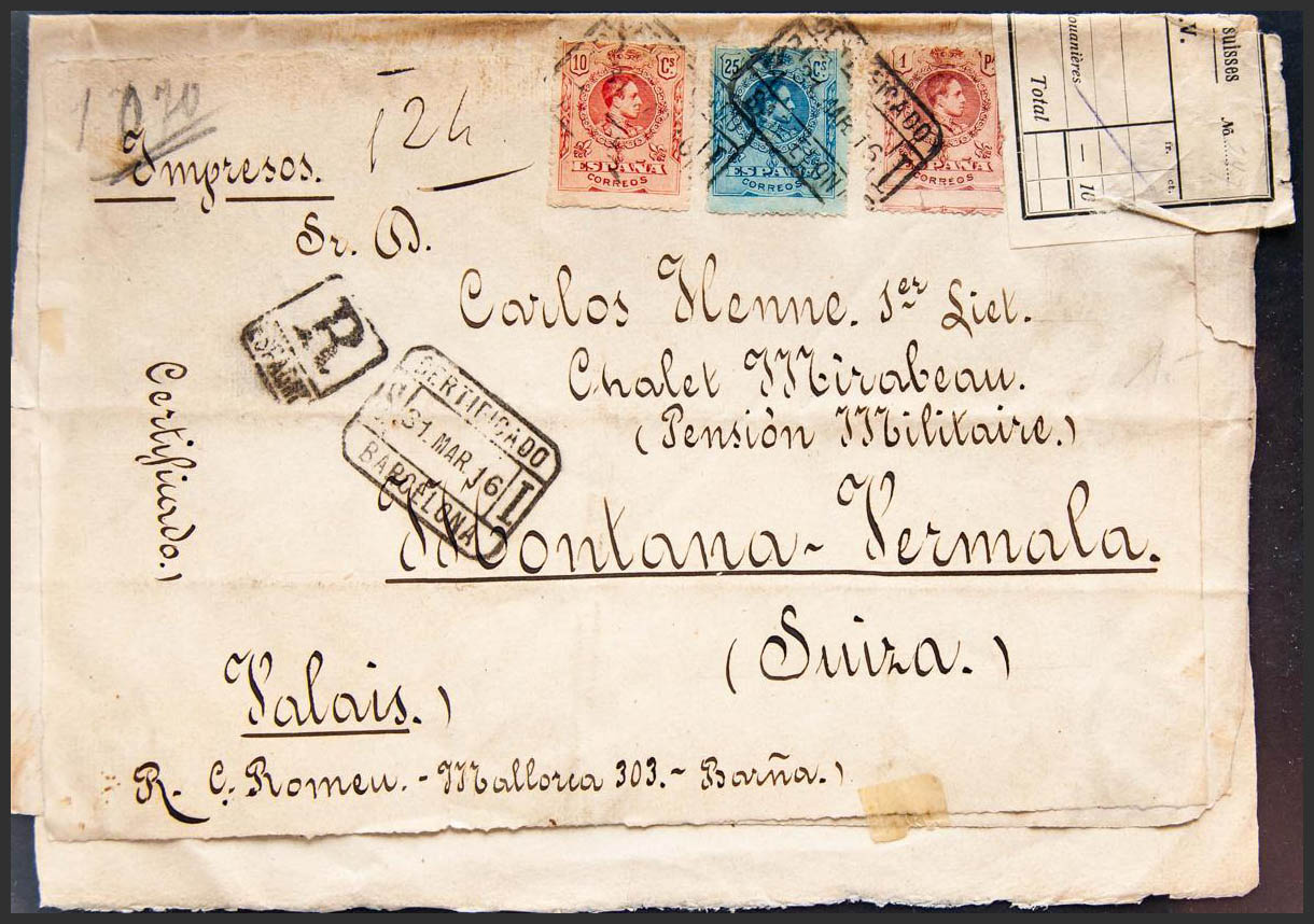 Alfonso XIII Certified Mail. PRINTED. CERTIFICATE / BARCELONA. MAGNIFICENT.