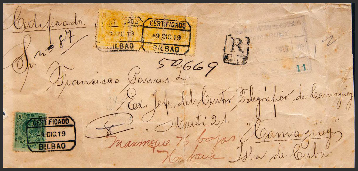 Alfonso XIII Certified Mail. CERTIFICATE / BILBAO. MAGNIFICENT.