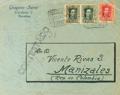 |ENVELOPE| 315(2), 317. 1930. 15 cts blue-grey, two stamps and 25 cts carmine. Certificate from BAGoodELONA to MANIZALES (COLOMBIA). On the back, vignette of the Barcelona International Exhibition 1929 and transit through Buenaventura. MAGNIFICENT AND UNUSUAL DESTINATION.