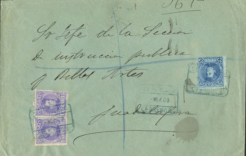 246(2), 248. 1909. 15 cts pair and 25 cts blue. Certificate from CEBREROS to GUADALAJARA. MAGNIFICENT.