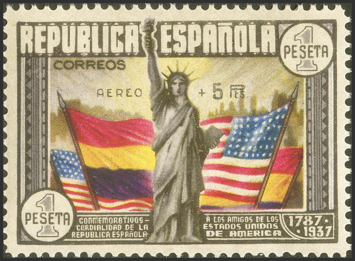 ★★ 765. 1938. AIR+5 PTS. Excellent centering. MAGNIFICENT. Cert. COMEX. Edifil 2024: 600 Euros