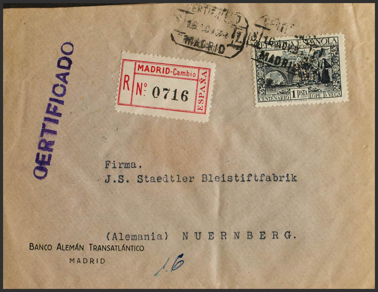Spain. Spanish Republic Registered Mail