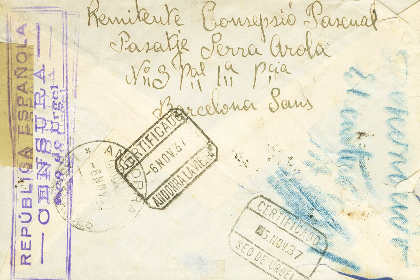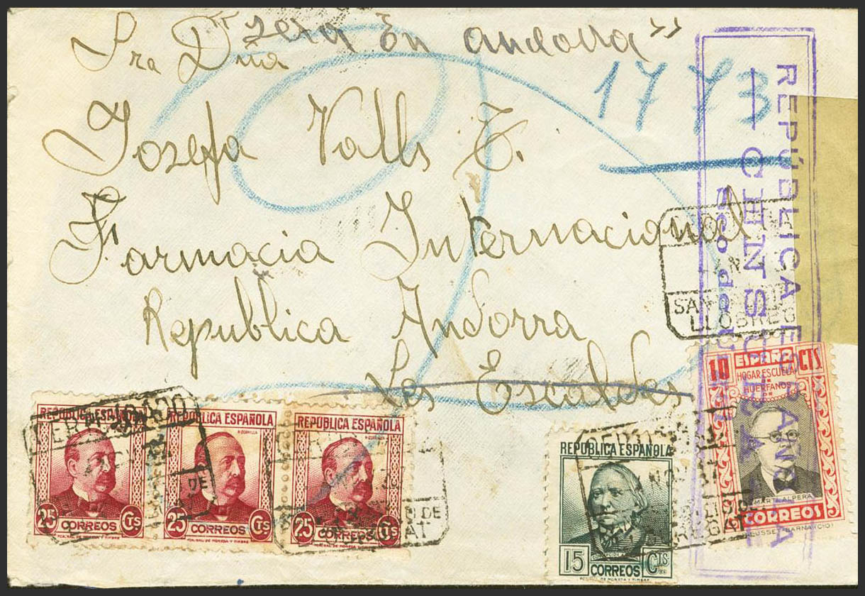 Spanish Republic Certified Mail. Addressed to ANDORRA, arrival on the back. MAGNIFICENT.