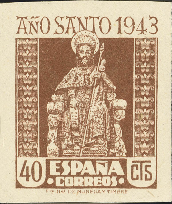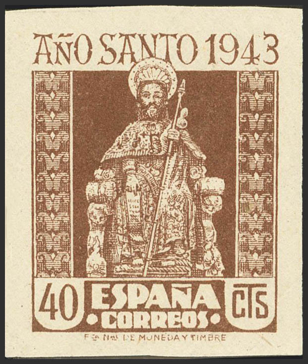 ★★ 962s. 1943. 40 cts chestnut. WITHOUT TOOTH. MAGNIFICENT AND RARE. Cert. EMF. Edifil 2024: 515 Euros