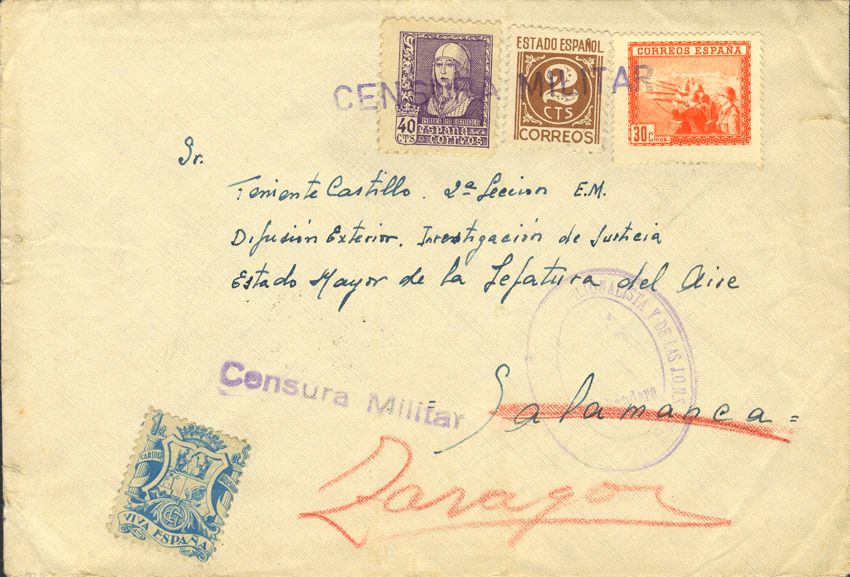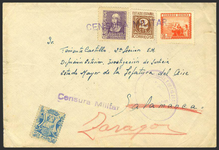 815, SH849B, 858. 1937. 2 cts, 30 cts and 40 cts. GRANADA to SALAMANCA and forwarded to ZARAGOZA. On the back arrival. MAGNIFICENT.