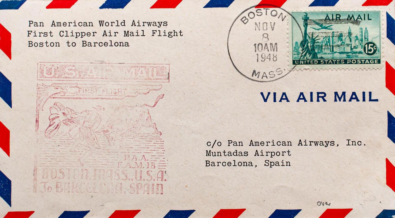 Spanish State Air Mail. BOSTON-MADRID, on the other hand, transit. MAGNIFICENT.