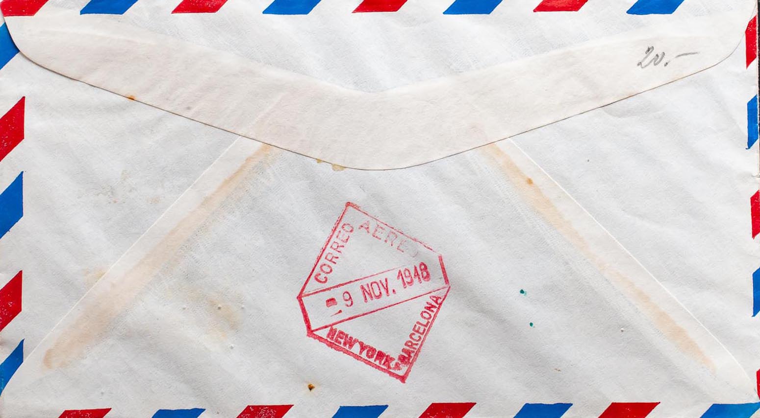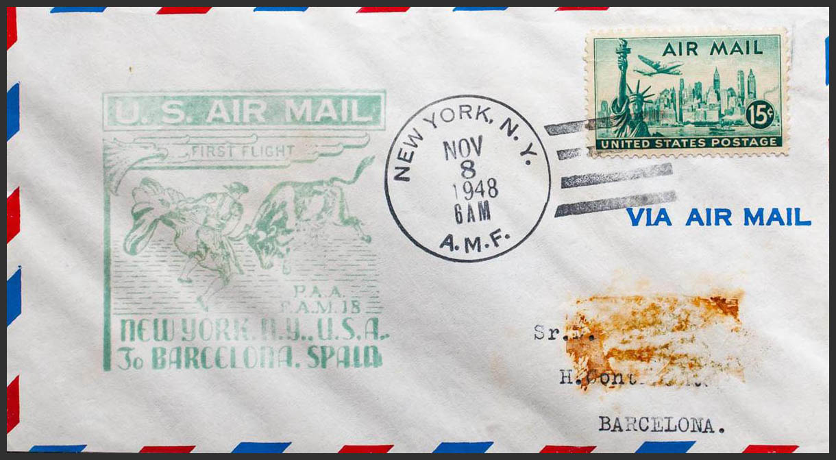 Spanish State Air Mail. NEW YORK-BARCELONA, on the other hand, transit. MAGNIFICENT.