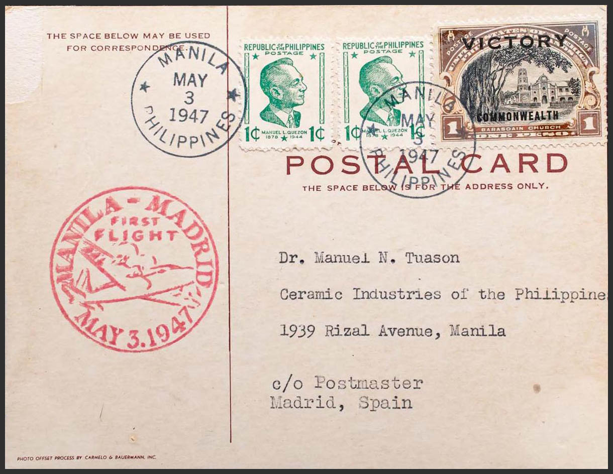 Spanish State Air Mail. MANILA-MADRID- FIRST FLIGHT. MAGNIFICENT.