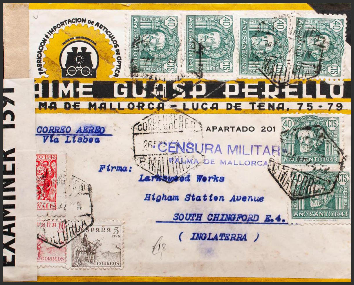 Spanish State Air Mail. PALMA MALLORCA to ENGLAND. On the back arrival. MAGNIFICENT.