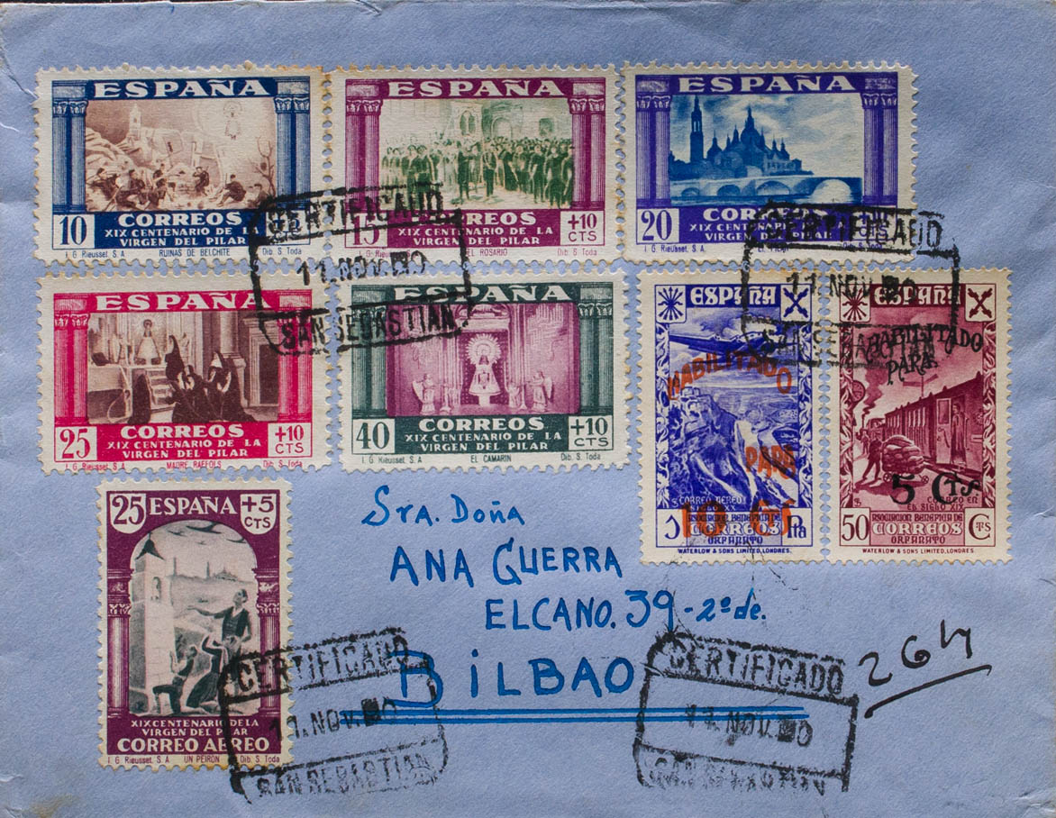 889/93, 904. 1940. Various values. Certificate from SAN SEBASTIAN to BILBAO. On the back arrival. MAGNIFICENT.