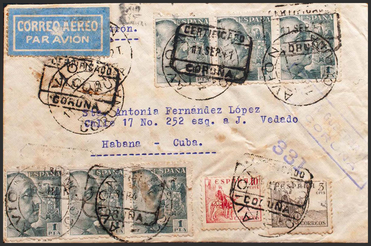 Spanish State Certified Mail. PLANE / CORUÑA, arrival on the back. MAGNIFICENT.