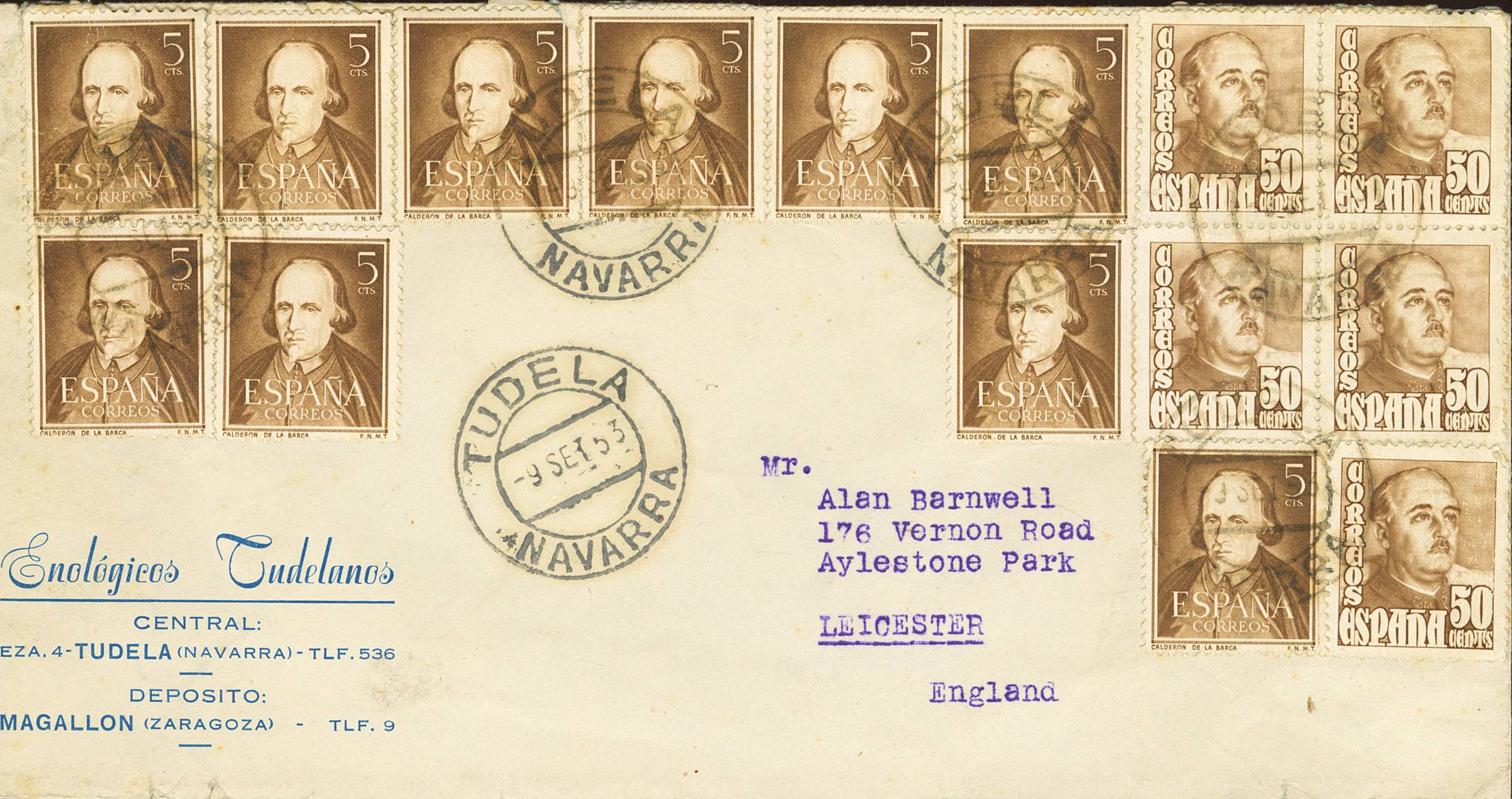 2nd Centenary prior to 1960. TUDELA / NAVARRA, arrival date on the back. MAGNIFICENT.