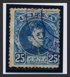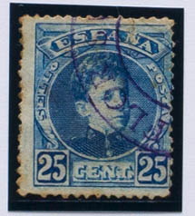 English 248. 1901. 25 cts blue. Special postmark CARTERIA VILLAFLOR / CANARIAS, in violet. MAGNIFICENT AND RARE.