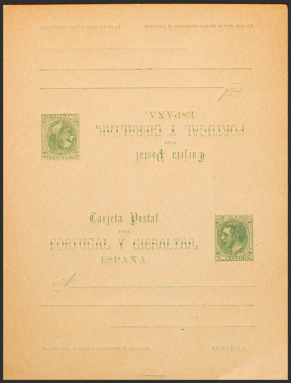 (★) EP14. 1884. 5 cts green Entire Card envelope Round-trip. MAGNIFICENT. Edifil 2015: 68 Euros