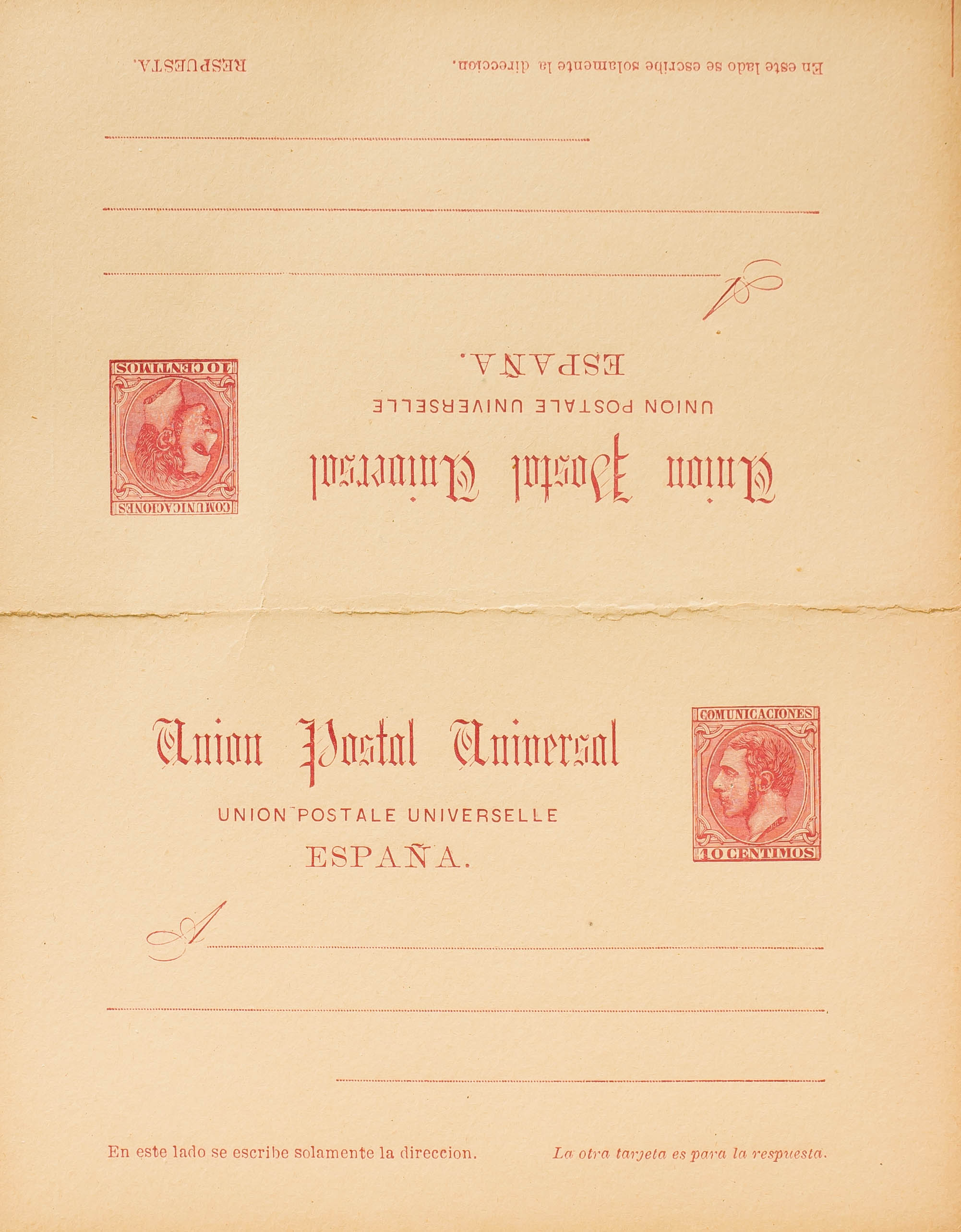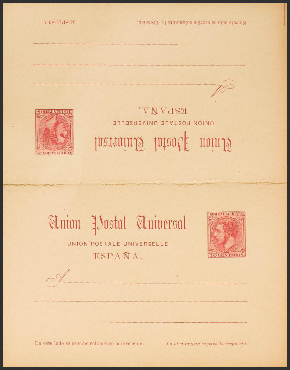 English (★) EP17. 1884. 10 cts + 10 cts carmine envelope Card Entire Post Office round trip. MAGNIFICENT. Edifil 2015: 40 Euros