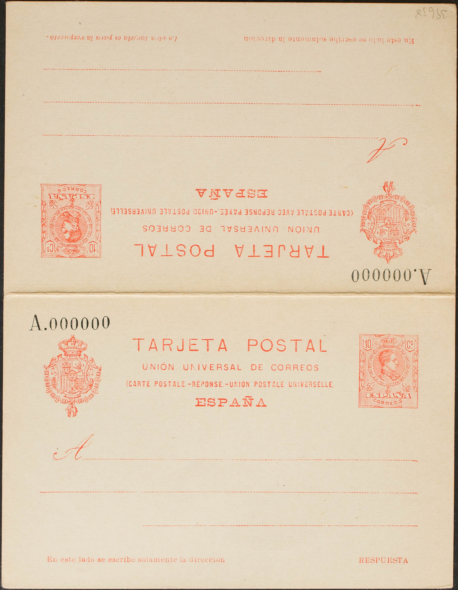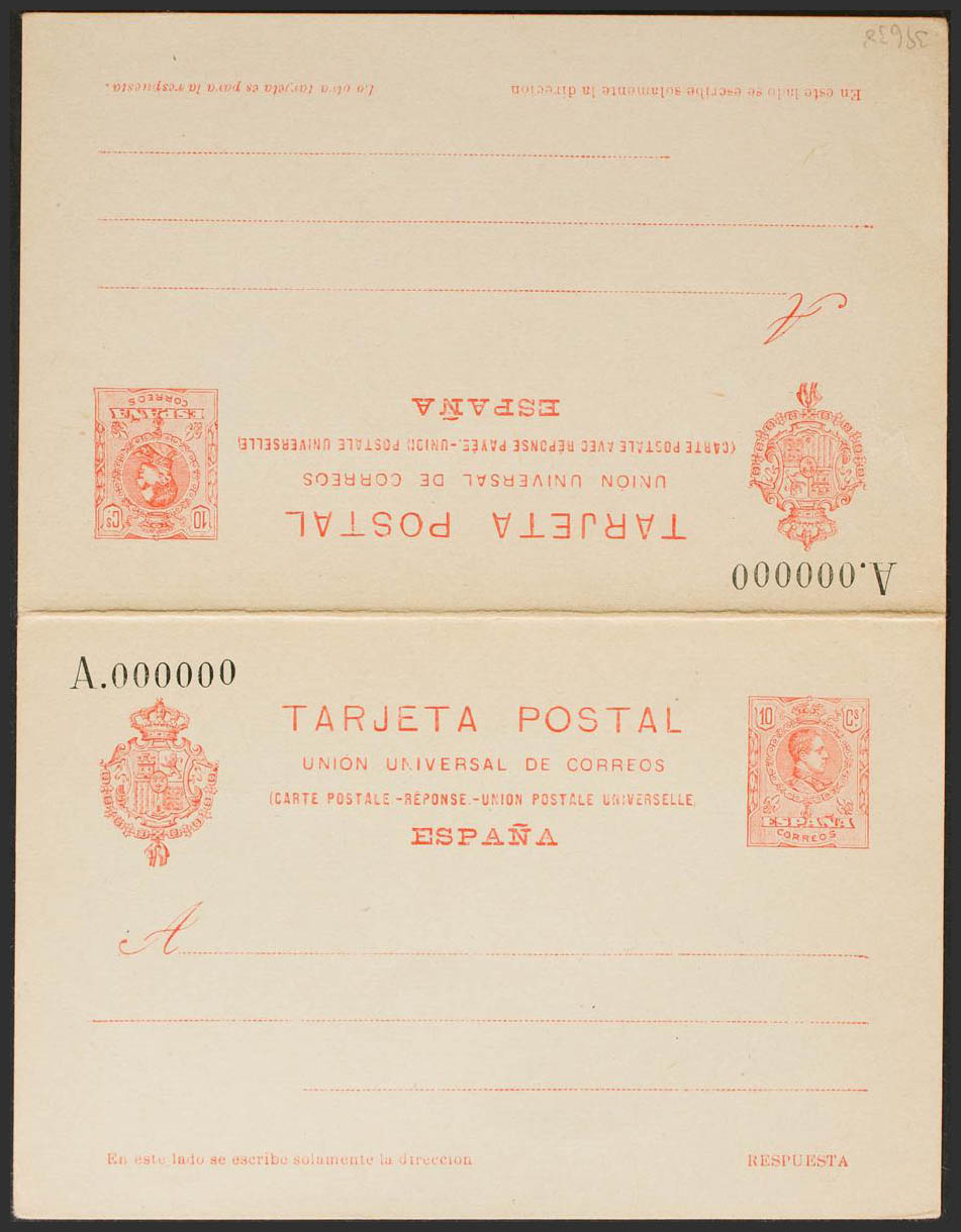 (★) EP54N. 1910. 10 cts orange envelope Card Entire Post Card back and forth. No.000,000. MAGNIFICENT. Edifil 2011: 117 Euros