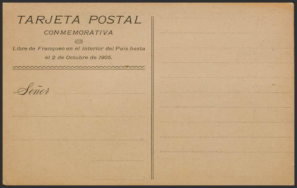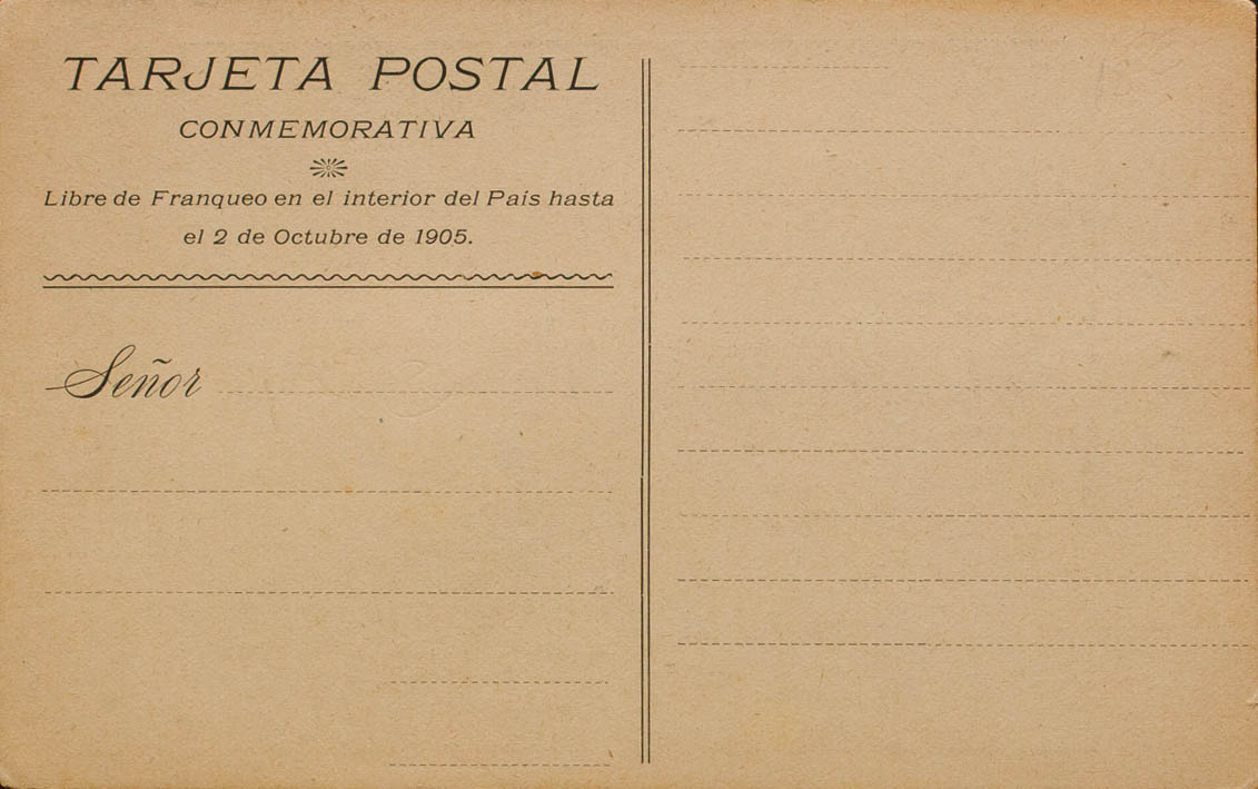 (★)1905. Commemorative Post Card "Free of postage in the interior of the country until October 2, 1905". MAGNIFICENT AND VERY RARE.