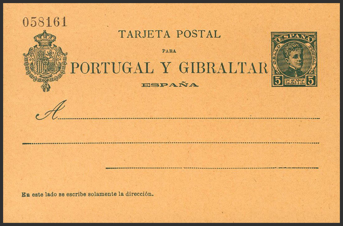(★) EP43, EP44. 1903. 5 cts blue green on Postal Stationery Card and 5 cts+5 cts blue green on Postal Stationery Card, back and forth. MAGNIFICENT. Edifil 2019: 111 Euros