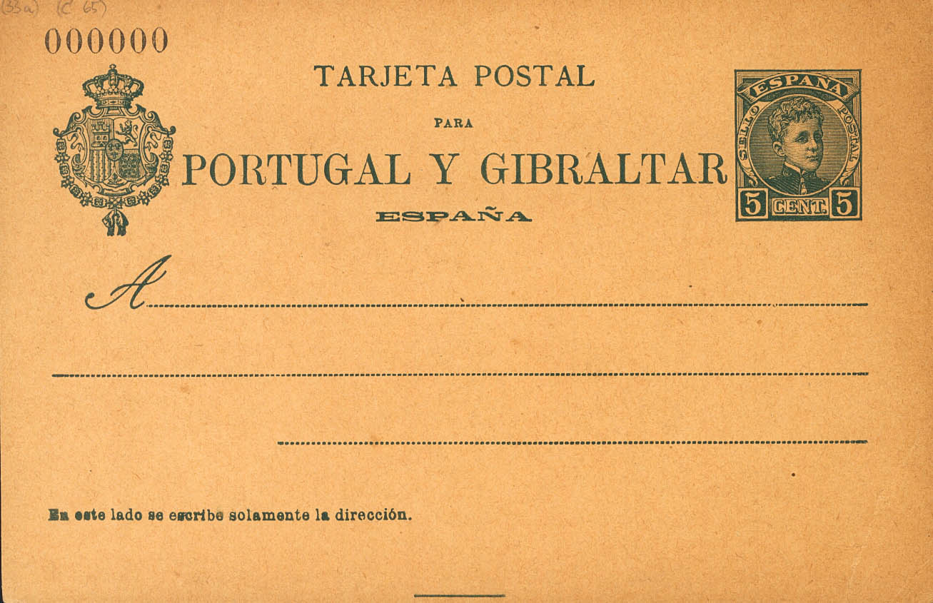 English (★) EP43N. 1903. 5 cts blue green envelope Post Card. No.000000. MAGNIFICENT. Edifil 2017: 105 Euros