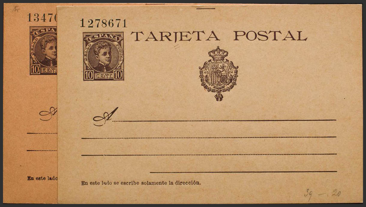 English (★) EP37, EP37A. 1901. Set of 10 chestnut cts on two Postal Stationery Cards, on different papers (buffy and salmon). MAGNIFICENT. (Laiz 2006, 185 Euros)
