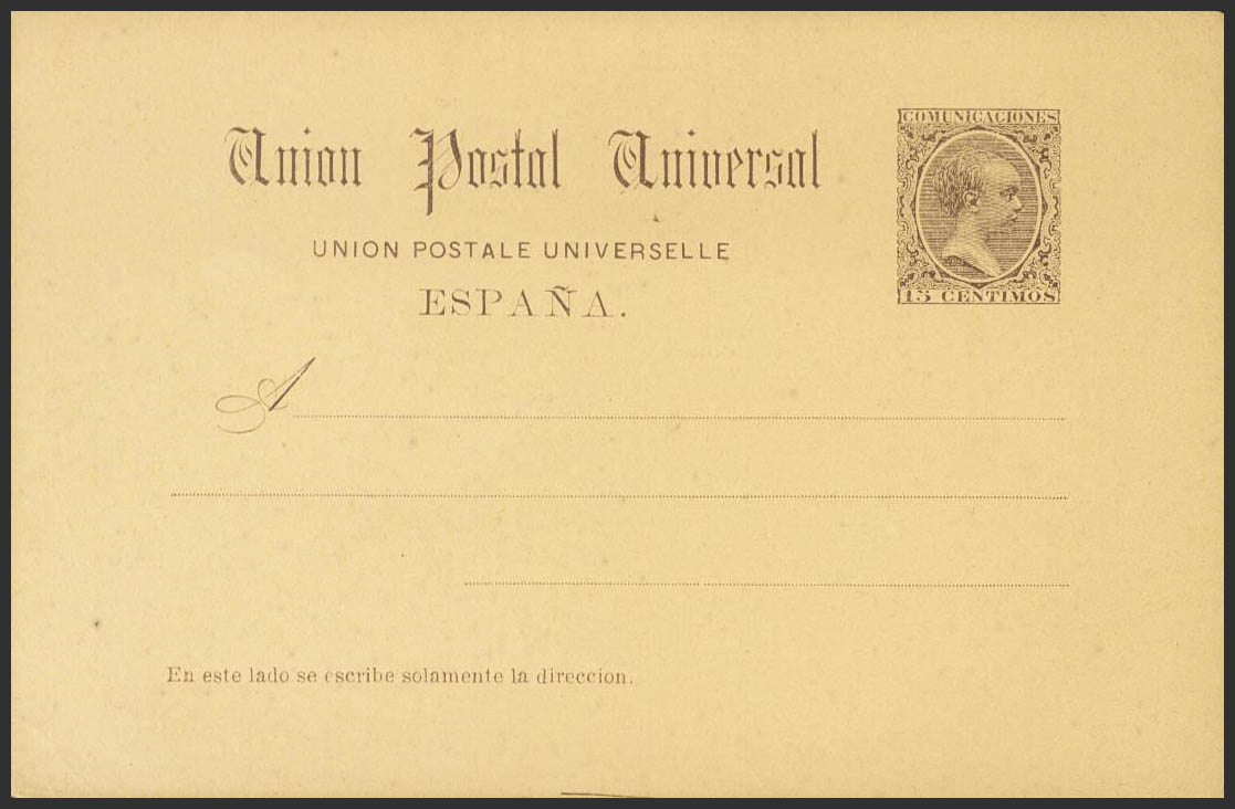 (★) EP22. 1889. 15 cts chestnut on Whole Postal Card. MAGNIFICENT. Edifil 2020: 89 Euros