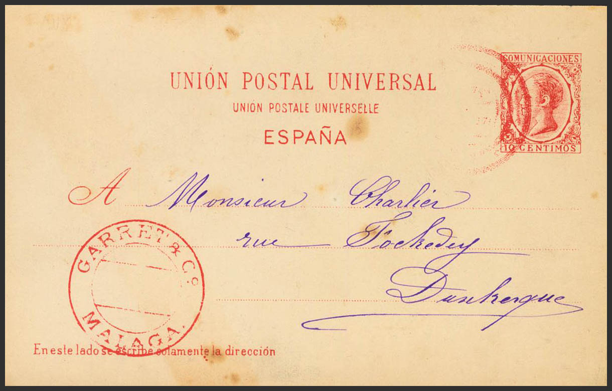 EPF1. 1893. 10 cts red on Entire Card Private Postal, made by Garret and Cº. MAGNIFICENT AND RARE. (Laiz 2006, 100 Euros)