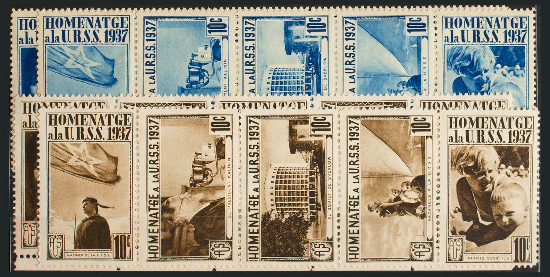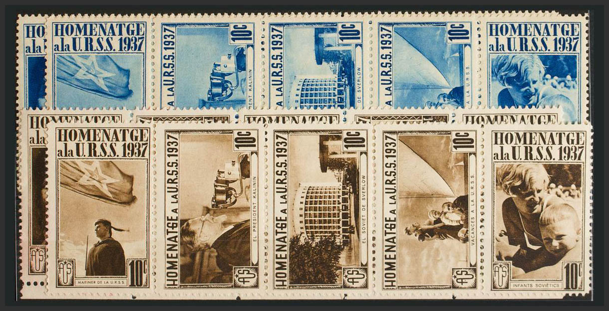 English ★1937. Four complete series in the colors that make up the whole series. TRIBUTE TO THE USSR. MAGNIFICENT. (Guillamon 1739/48A-D)