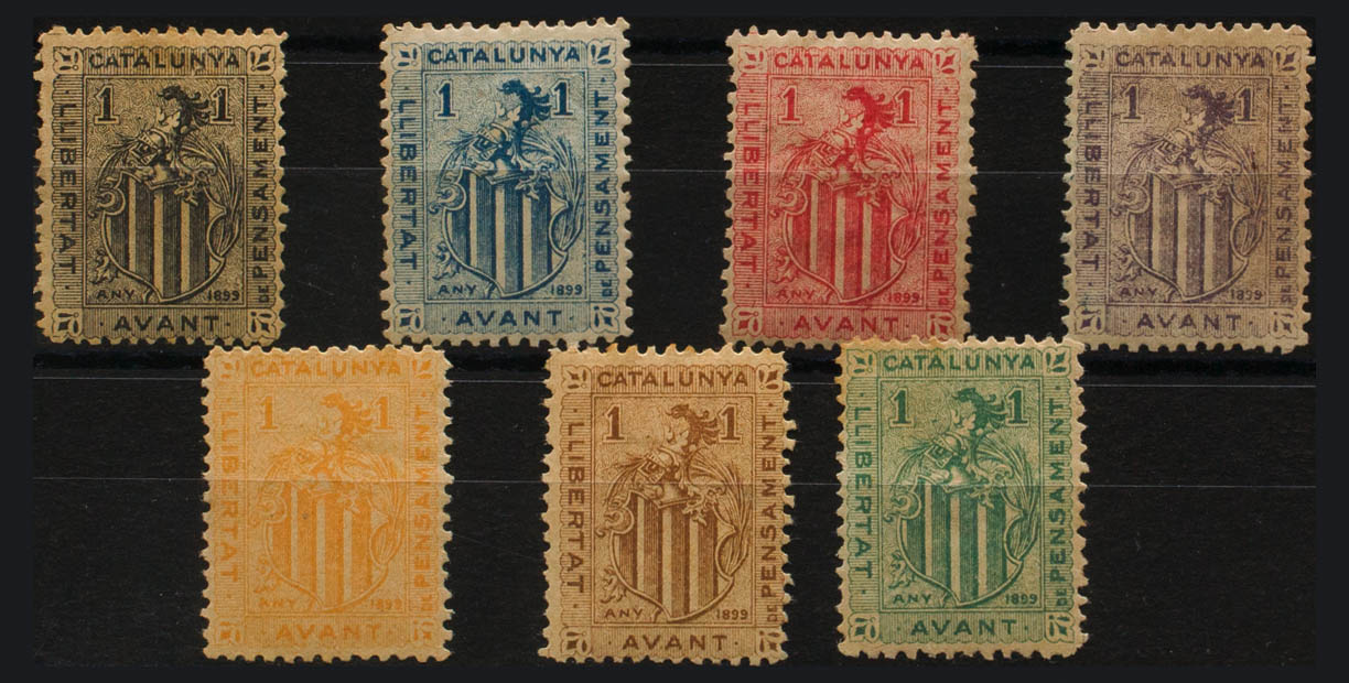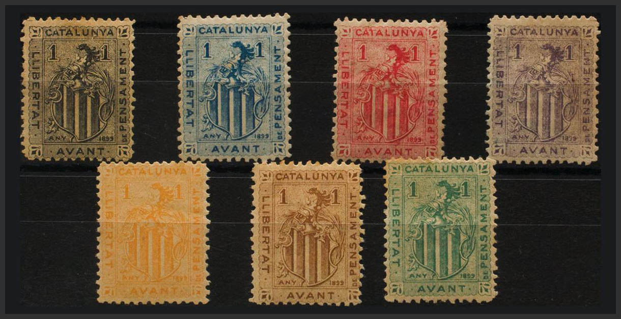 ★/(★)1899. Seven vignettes in different colors CATALONIA. FREEDOM OF THOUGHT. BEAUTIFUL. (Nathan 7)