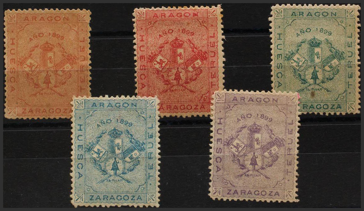English ★/(★)1899. Five vignettes in different colors. ARAGON THE PILLAR. MAGNIFICENT AND RARE. (Nathan A3)