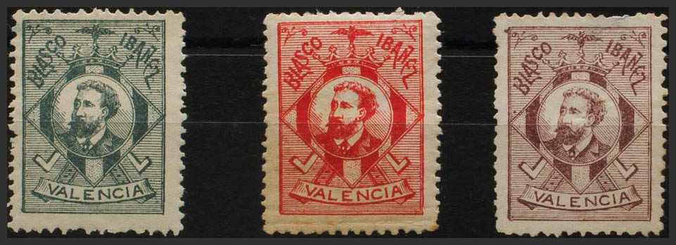 ★/(★)(1900ca). Three vignettes in different colors. VALENCIA BLASCO IBAÑEZ. MAGNIFICENT. (Nathan V13)
