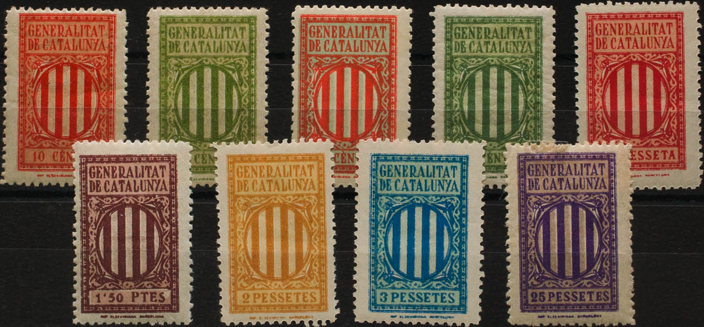 ★(1900ca). Set of nine vignettes of different values and colors. GOVERNMENT OF CATALONIA. MAGNIFICENT.