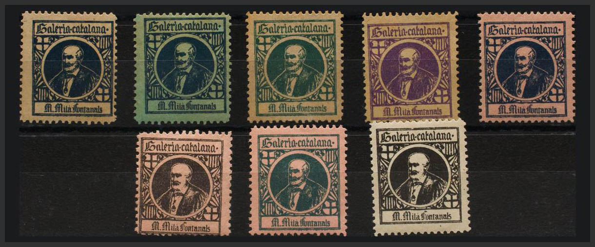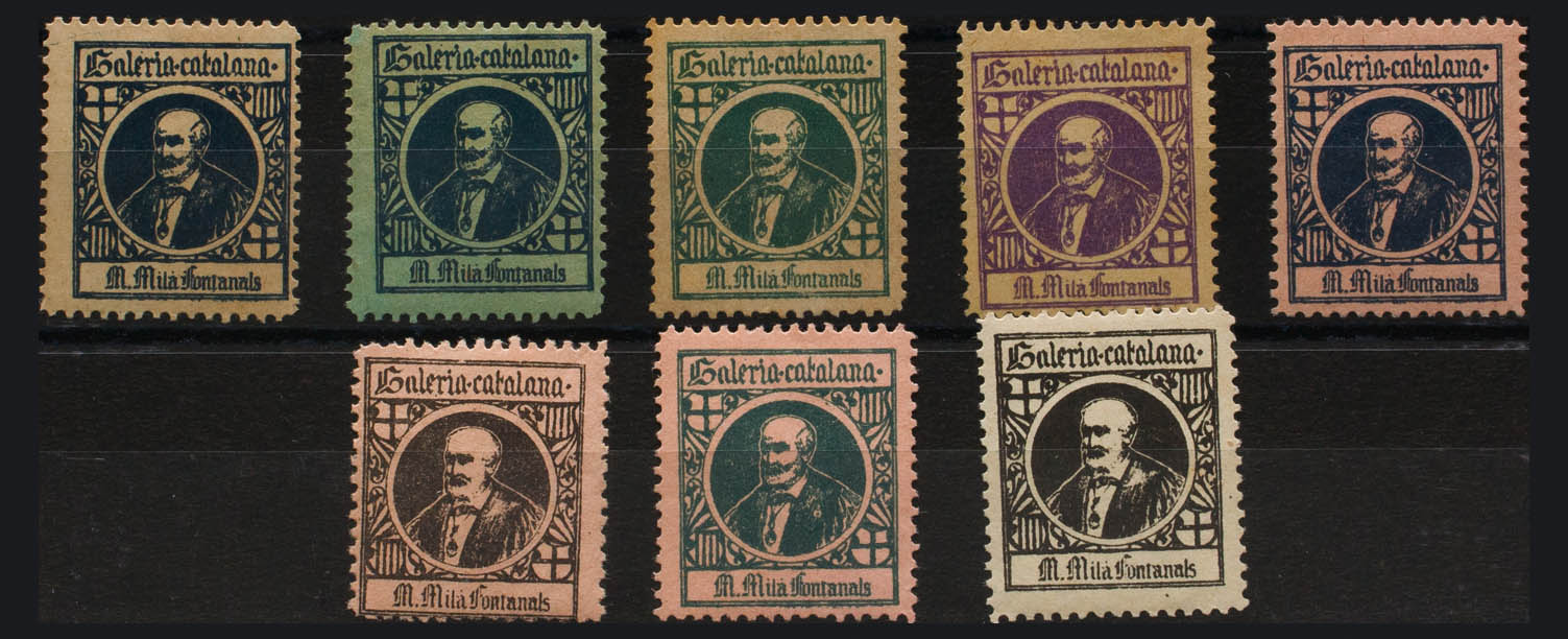 ★/(★)(1900ca). Eight vignettes in different colors and papers. CATALONIA M. MILA FONTANELLS. MAGNIFICENT. (Nathan 36-2)