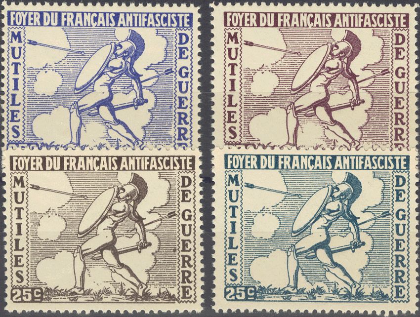 (★)1937. Complete series. FOYER DU FRANCAIS ANTI-FASCISTE, MUTILES DE WAR. MAGNIFICENT. (Guillamon 2231/34).
