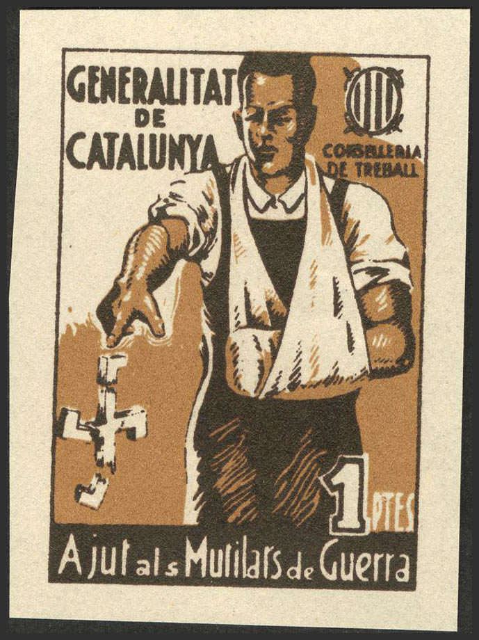 (★)1937. 1pt NO TEETH. DEPARTMENT OF TREBALL, AJUT ALS MUTILATS DE GUERRA. MAGNIFICENT AND NOT LISTED, WITHOUT DIRT. (Guillamon 2145).