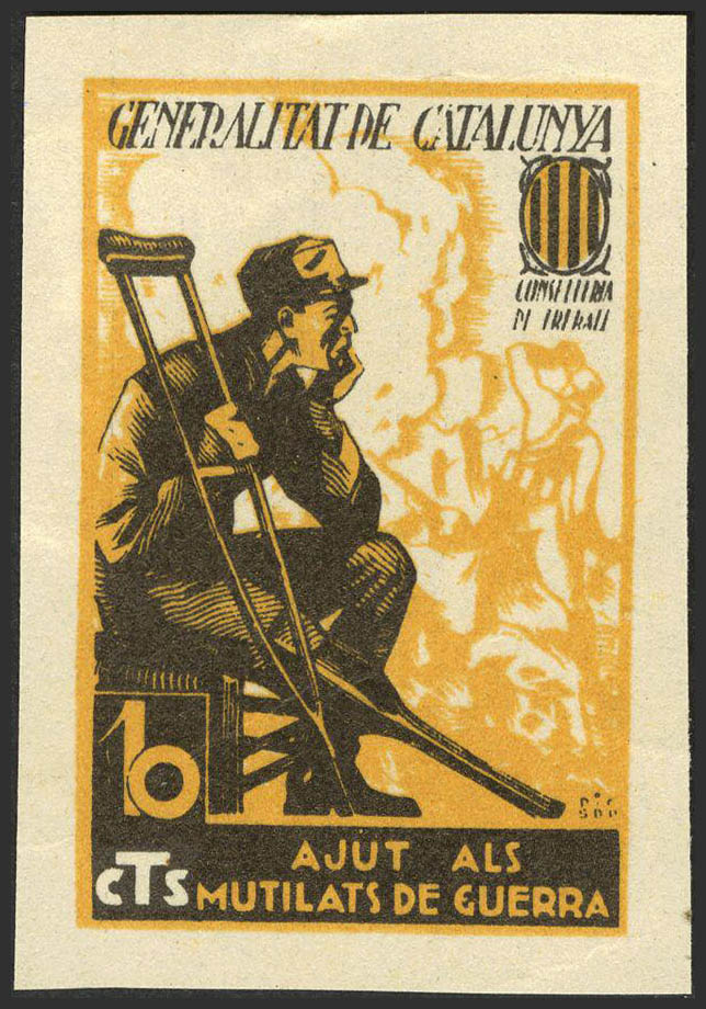 (★)1937. 10 ct. NO TEETH. DEPARTMENT OF TREBALL, AJUT ALS MUTILATS DE GUERRA. MAGNIFICENT AND NOT LISTED, WITHOUT DIRT. (Guillamon 2143).