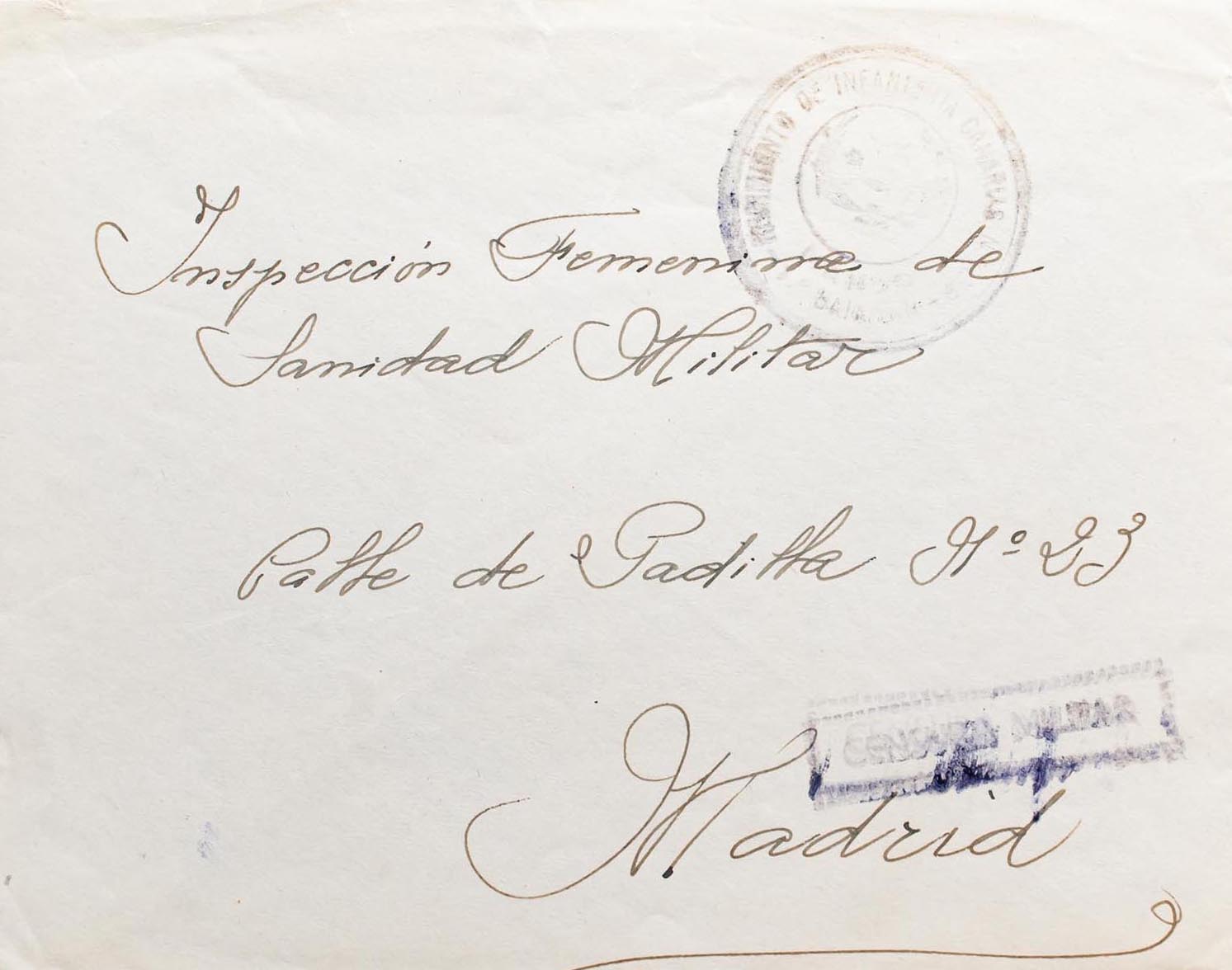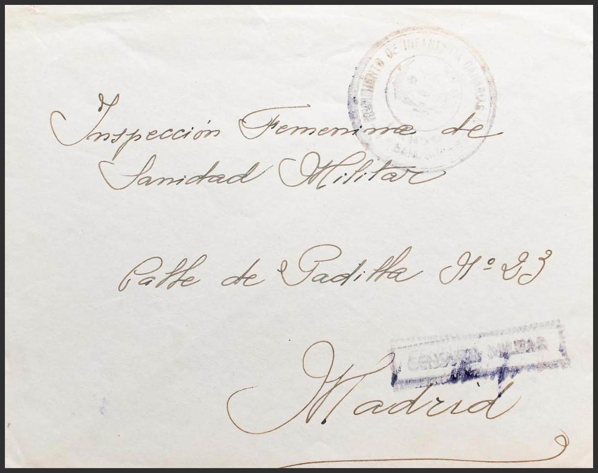 (1939ca). Addressed to MADRID. CANARY INFANTRY REGIMENT / COMMAND / 1st BATALLION brand, in violet-black. MAGNIFICENT.