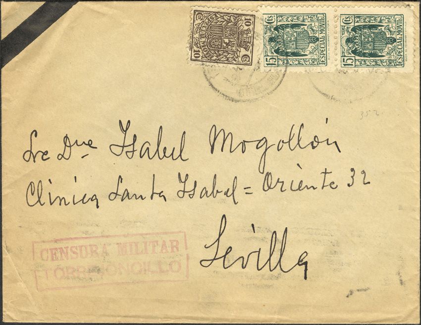 Phys 102(2). 1939. 10 cts brown and 15 cts green, pair MOBILES. TORREJONCILLO to SEVILLE. On the back arrival. MAGNIFICENT.