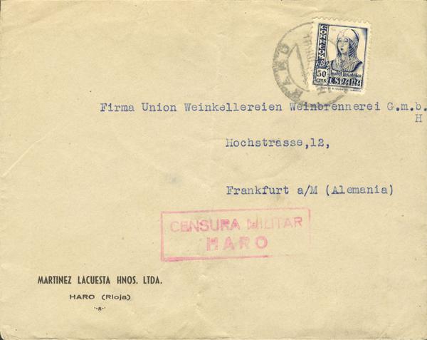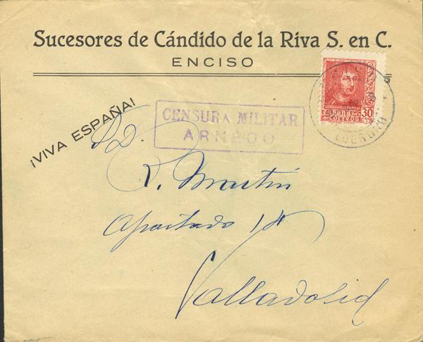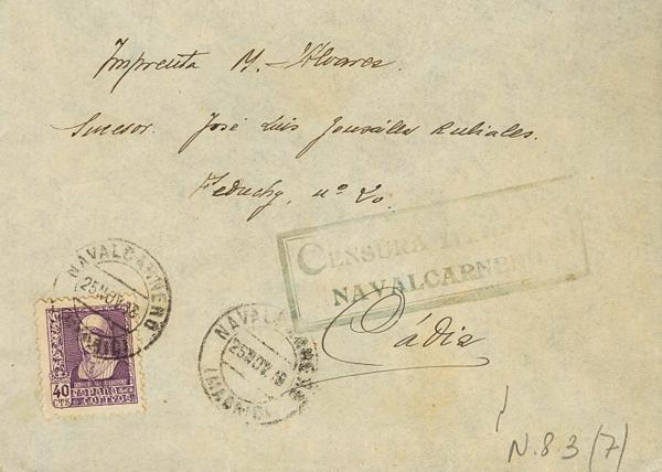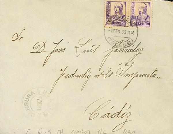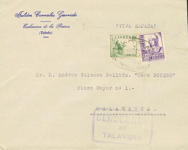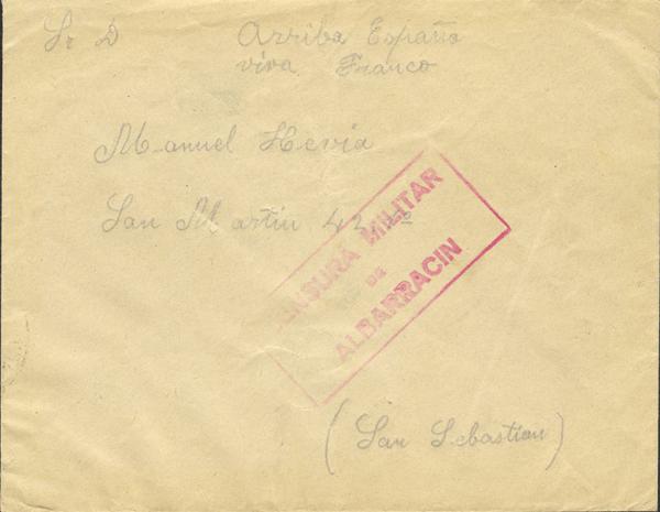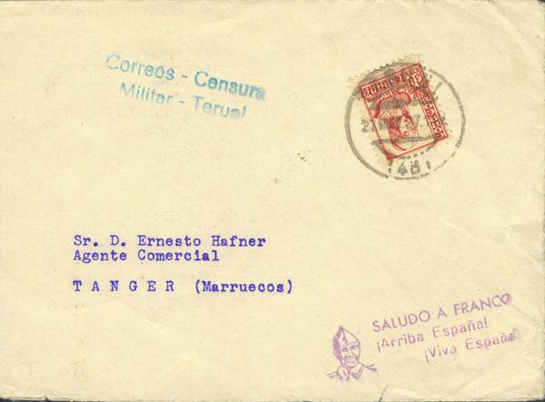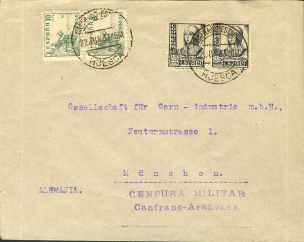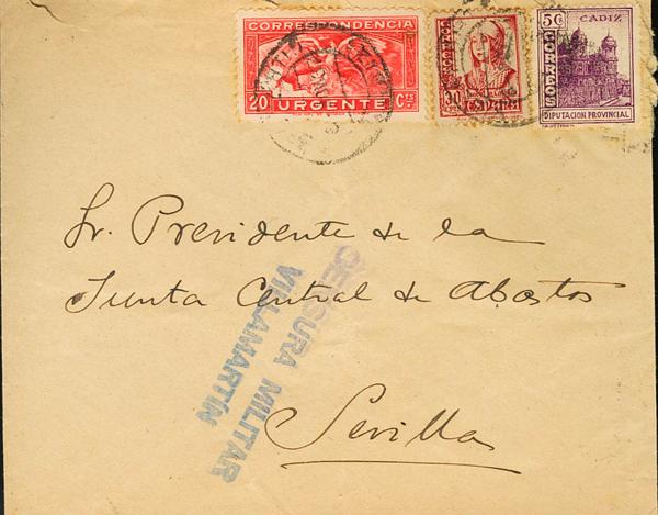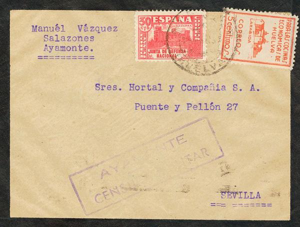 Civil war. National Side Military Censorship. JAEN to ECIJA. MAGNIFICENT.