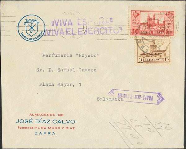 Civil war. National Side Military Censorship. Printed. MILITARY CENSORSHIP / BARCELONA. MAGNIFICENT.
