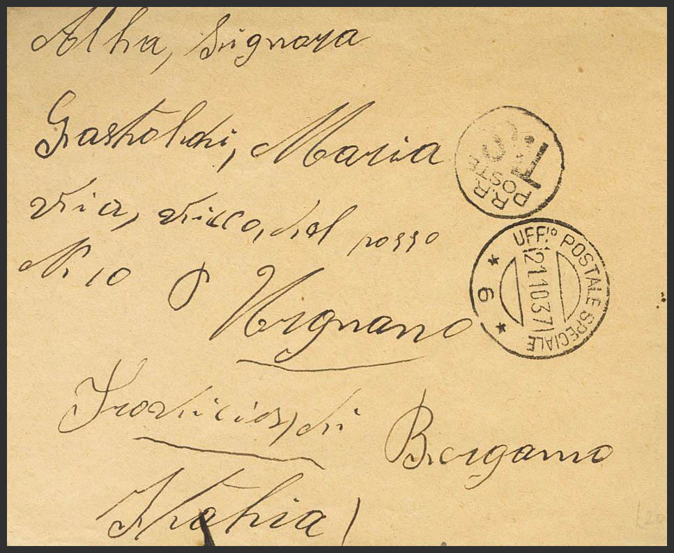 English 1937. Addressed to BERGAMO (ITALY). Dater UFFIº POSTALE SPECIALE / *6* and rate mark RR / POSTE / TS and arrival back. MAGNIFICENT.