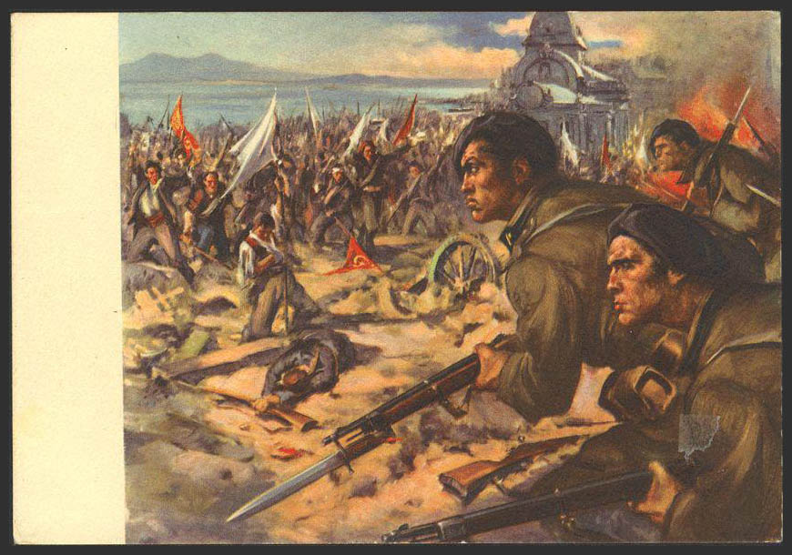 English 1938. Illustrated Italian Volunteer card in Spain addressed to MILAN. UFFICº POSTALE SPECIALE mark / *5*. MAGNIFICENT.