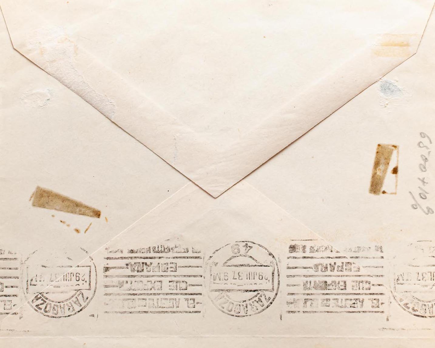 1/2. 1937. Complete series and various values. BORJA to ZARAGOZA. MILITARY CENSORY / BORJA postmark and arrival on the back. MAGNIFICENT AND RARE.