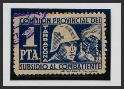 1937. 1 blue sts. TARRAGONA. FIGHTER SUBSIDY. MAGNIFICENT. (Allepuz 8)