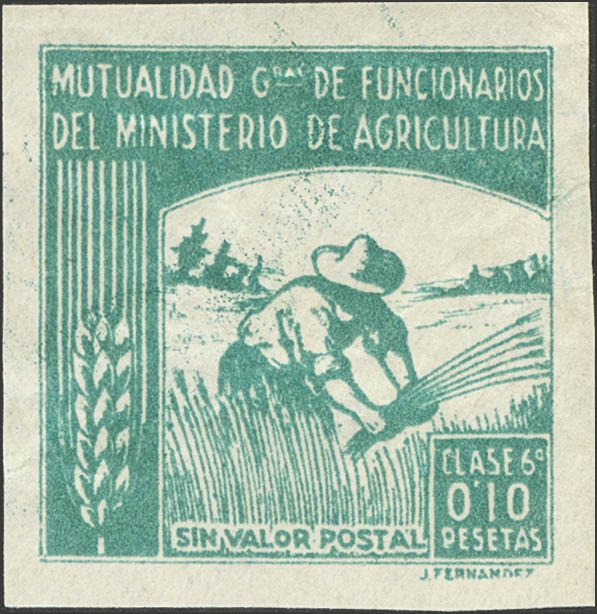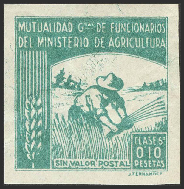 English (★)(1940ca). 10 cts green GRAL MUTUALITY OF OFFICIALS OF THE MINISTRY OF AGRICULTURE. NO TEETH. MAGNIFICENT.